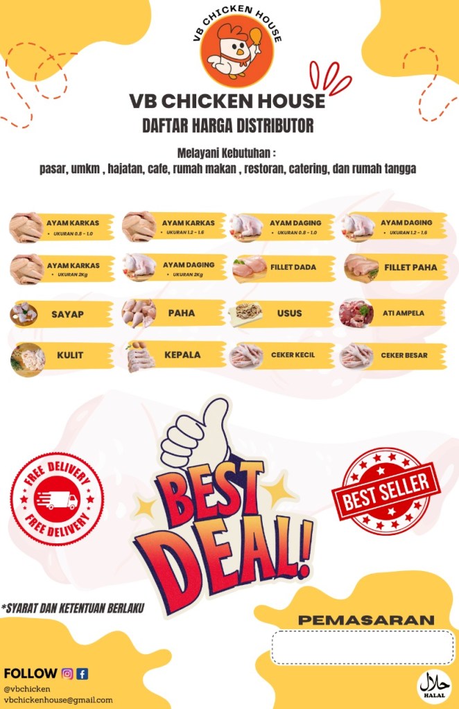 Yuk kepoin Harga Terbaru Ayam Potong 13 s/d 18 febuari 2023Terima Pesanan untuk kebutuhan restoran, warung , cafe, pasar, hajatan, katering, dan rumah tanggaPemasaran : +62 812-2225-4115Follow terus ig :@vbchickenhouse@vitschickenhouseayambakar#ayamkecap#ayamricarica #ayam #ayamgeprek #ayampotong #ayamtege #ayamkiloan #filletsteak #filletayam #filletpahaayam #ceker #kepalaayam #atiampela #rpaayamsumedangayampotongpasar #bandung #sumedang #kabupatembandung #kabupatenbandungbarat